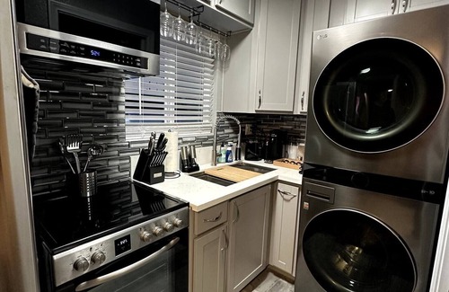 All guest will enter through your private entrance located to the left side of the white garage door. You will be given a 4 digit code once booked ( enter the 4 digit code and press the unlock key symbol ). Once you enter, you will see the ADU to the left. There are two Suits ( The Letter A & B, is located next to the door below the light. Enter the same code to gain entry to your assigned suit.