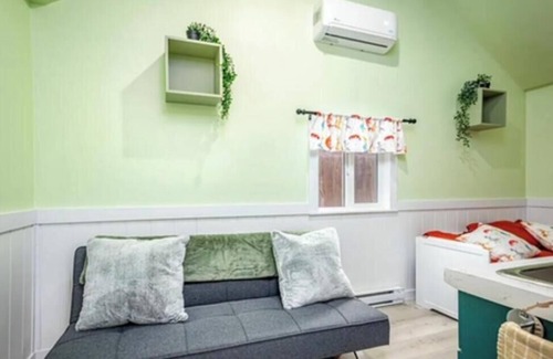 Ideal for couples or small families, the Gnome Home embodies the essence of European small-space living, encompassing comfort and convenience. Unwind on our plush queen-sized Murphy bed or the convenient fold-down futon after a day of exploring all that Vernon has to offer. The compact yet efficient kitchen area has all the essentials for preparing a light meal, while a cozy private bathroom awaits you with all the essentials for your home away from home.
