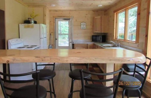 This cozy, 2-bedroom, knotty pine cottage on 40 acres with a pond and a creek sleeps 4-6 comfortably. Enjoy your time relaxing on the floating dock, fishing in the trout pond, or simply enjoy the sounds of the flowing creek and the crackling sound of a bonfire. It's the perfect location in Central Michigan for many activities such as golf, canoeing, riding ATVs, or taking advantage of the 20 lakes within 20 minutes. This place is nature's paradise! You never know what you might hear or see!