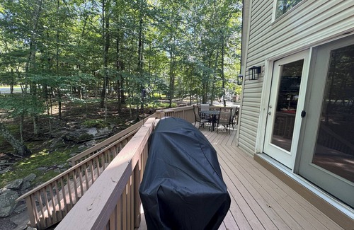 The gas fireplace adds warmth and ambiance to the living area, creating a cozy atmosphere for gathering and unwinding after a day of adventure. And the beautiful oversized deck with a grill and outdoor seating space provides the perfect setting for enjoying meals al fresco or simply soaking in the natural beauty of the surroundings.