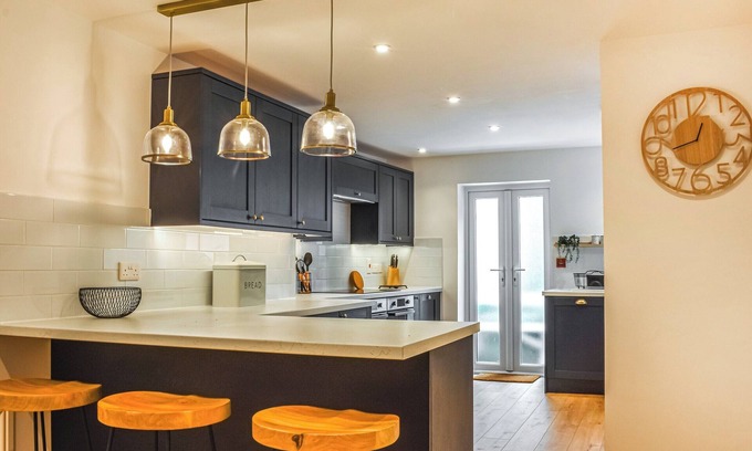 Bedroom 7: Double (4ft 6in) Bed, Freeview TV Ensuite: Bath, Cubicle Shower, Toilet. Gas central heating, electricity, bed linen, towels and Wi-Fi included. Enclosed back garden with patio and garden furniture. On road parking. No smoking. . Set over three floors, Warrington House offers an abundance of space, perfect for big family get-togethers. As you enter the house, you’ll be captivated by the open-plan living room located at the front, providing a bright and inviting space for relaxation. Adjacent to the living room is a spacious dining area with a table that can seat 14, perfect for gatherings and meals shared with loved ones. The modern kitchen, complete with integrated appliances and a convenient breakfast bar, seamlessly connects to the living room and overlooks the enclosed patio at the rear of the house. Here, you can unwind in the outdoor seating area, enjoying the warmth of the sun. Back inside you have a second cosy living room which gives you an insight into the heritage of the building, with its beamed ceiling as well as the original cast iron bed oven this is a characterful and intimate space, and the stove in the stone fireplace ensures you have snug nights in bathing in the glow from the flames. The ground floor also features a utility room, adding convenience to your stay.