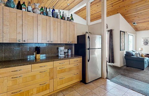 Surrounded by lush vegetation and trees, Momma's Paradise is shaded and cool for those hot summer days. Inside the fully-stocked interior, you'll discover modern appliances and bohemian decorations. The kitchen is well-equipped with stainless steel appliances, ample meal prep space, and a variety of bakeware. There are plenty of spices, tea, and coffee for your enjoyment as well. In the living room, put your favorite show on the smart TV and engage in some playful competition over the large Jenga set or chess board.