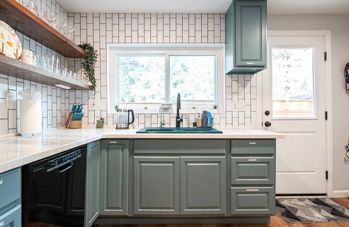 Fully stocked cabin that has a newer kitchen appliances, washer/dryer, tankless water heater, and a powerful gas heater for the ultimate cozy stay. Comfortable foam mattresses with organic cotton beddings, darkening curtains and blinds if you like to sleep in. Fan in the bedroom and glass slider leading to the spacious and private backyard. String lights and a hot tub with color changing LED lights set the romantic ambiance. Stars gaze and relaxxx. You can really let go and feel at home here.