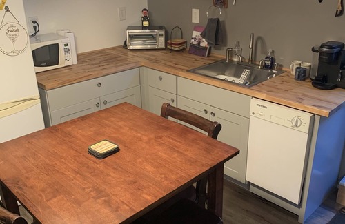 We are happy to welcome you to the Kottage on Kenyon. The open-concept floor plan allows room for entertaining and gives a spacious feel to the 500 square foot Kottage.