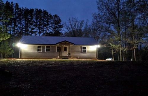 Whispering Pines is an exclusive guest house nestled back in the country. The home is a newly constructed with finish out being completed April 2019. This 3 bedroom, 2 full bath home has more than 40 acres of woods and trails to explore. You and your guest will have the whole home and 40 acres to yourself for a unique stay.