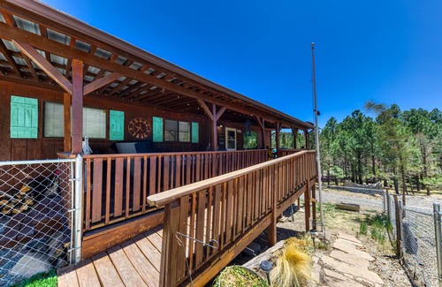 Tucked away in the pines, Whispering Woods is the peaceful, cozy retreat you've been craving. This 2-bedroom, 2-bath cabin in Ruidoso offers the perfect blend of rustic charm and modern comfort — ideal for small families, couples, or a girls' weekend away.