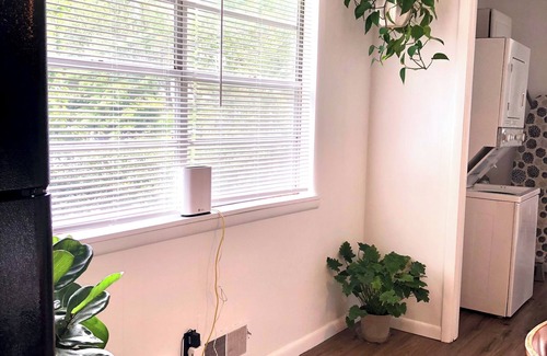 Small cozy place minutes to the town square and very close to lots of restaurants, coffee shops, shopping and grocery stores! There is one King Bed, and one Queen bed which would be very comfortable for 4 guests! Kick back and relax on the deck.