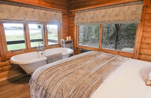 The open-plan studio layout includes a king-size bed, freestanding bath, sitting with Smart TV and open fire and dining area. There is a separate kitchen housing an electric oven and halogen hob, microwave, fridge with freezer compartment. Serving the bedroom is a shower room. To the outside is a veranda with seating, picnic and barbecue and off-road parking for one car. Within 1.5 miles there is a shop and within 1.4 miles there is a pub. WiFi, fuel, power, bed linen and towels are all included in the price. This property does accept pets but sorry, no smoking. Whitemoor Lodge is a fantastic escape, whatever time of year. Note: Fishing rights and use of the boat included. Note: There are 25 steps down the lodge