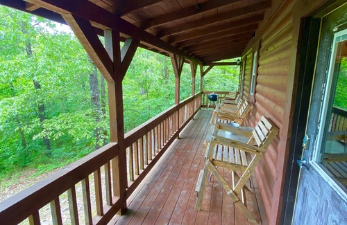 Somebody once said: "Leave the road, take the trails." Not sure who said it, but we bet their inspiration was the Wilderness Cabin. Here on the mountaintop, wilderness abounds: flora and fauna, beast and bird. This is why keen adventurers choose the Wilderness cabin as their home base. Whether it be big buck, turkey, coon, skunk, squirrel, bear, bobcat, small and large mouth, red cockaded woodpecker, North American Yeti, or even the mythic black panther, this cabin was born wild and lives wild, and you will too. The Wilderness sleeps 9, but only because adventurers, like all God's creatures, need to rest on occasion. With a fully stocked open kitchen with dishwasher, oven, stove, refrigerator and microwave, and dining room table, your tribe can all contribute to meal prep. The downstairs living quarters comes complete with a gas fireplace, satellite television, pull out sleeper sofa as well as two bedrooms and one full bath. Lofted upstairs are a queen-sized bed and twin, washer and dryer and full bath. Wilderness watch from the back or front porch, cookout on the charcoal grill and dine outdoors on your very own picnic table. Enjoy Mena Mountaintop Vista Picnic Area and Firepit, Free Wi-fi, Cell Service, Ride-in access to Wolf Pen Gap Trails. If Nature is calling you, the Wilderness is waiting. (Mena Mountaintop Cabins... Our Cabins are Tops!)