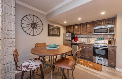 Serenity is assured in this cozy condo! Hot drink in hand, you can easily amble from the warm tangle of bed directly into the steaming sunlight of morning to watch the sunrise from your own private balcony. RENOVATED in Spring 2016! Check out the all-new look of 206A! Located on the second floor, this studio-style unit is classically cool with joint living, dining, and sleeping spaces that make for an intimate and cozy setting along the lake. Sit before the synthetic log-burning fireplace or take in the view from the balcony before checking out all the fabulous resort activities offered! From on-site dining and an indoor swimming pool to community docks and a sandy beach lakefront, you’ll never want to leave our fabulous resort community!Â