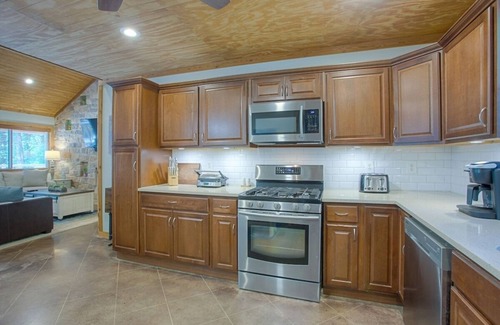 Experience the perfect family getaway. Sit back and enjoy the beautiful tree views from the spacious deck. Enjoy the hot tub and large private yard. Open the barn doors and try your luck at table tennis. As the evening settles in, walk over and reminisce at the perfect fire pit space that can accommodate your entire group.