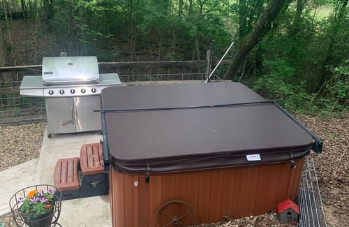 Willow’s Cabin has the absolute getaway opportunity that includes an outdoor hot tub, outdoor bathtub, inside garden tub, queen sized bed and a comfy chair that folds out into a twin sleeper, a full kitchen complete with a stove, microwave, refrigerator/freezer, Keurig, and all cooking necessities to prepare your meals and enjoy on the handmade kitchen table or on the 8’ x 30’ front porch overlooking the ponds furnished with rocking chairs and ceiling fans while listening to nature or your favorite tunes from the outdoor speakers.