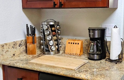 Our property is your home away from home right in wine country. Both bedrooms offer queen beds and walk-in closets with the Master bedroom having an En-Suite bathroom. Bathrooms offer modern amenities and decor with Italian Marble counter tops. Kitchen is fully stocked with everything you would need to cook any meal. Being a chef myself I made sure nothing was left out.