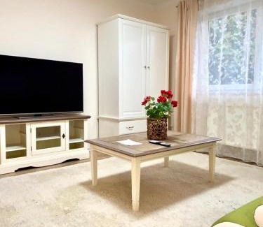 BathroomToilet, Hairdryer, Shower, Toilet paper, Private bathroom, Towels, Bathtub or showerMedia & TechnologySatellite channels, Flat-screen TV, TVGeneralSmoke Alarm, Iron, Heating, Ironing facilities, Key access, Trash cansKitchenStovetop, Oven, Electric kettle, Toaster, Refrigerator, Microwave, Kitchen, Kitchenware, Coffee machineLiving AreaSofaBedroomWardrobe or closet, LinensAccessibilityEntire unit located on ground floorBuilding CharacteristicsPrivate apartment in buildingRoom AmenitiesSocket near the bed, Non-feather pillow, Sofa bed |