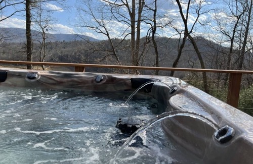 Nested in the mountains you can forget your worries in this spacious and serene space with long range views. Enjoy the views while soaking in the hot tube or while roasting Marshmallows of the the fire pit.
