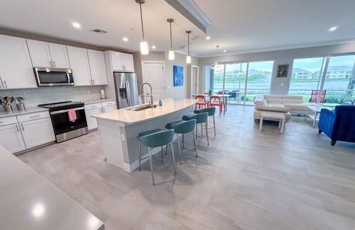 All new furniture appoints this spacious three bedroom (maximum occupancy of 4), two bathroom first floor condo which sits with one of the most unique lake views in the Antilles community.