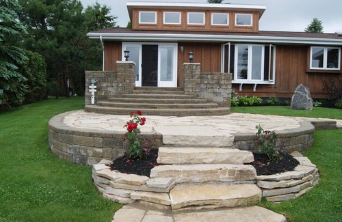 .We are located within the city limits but far enough away to avoid the hustle and bustle of the city. The home is fully furnished and very comfortable. The front of the house faces the water and the view is magnificent. Sitting on the stone patio, (reading a book. having a meal, sunbathing) ) you will see large Freighters heading towards the Sault Ste. Marie Locks. The property has large mature evergreen trees as well as a red Maple tree