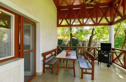 This cosy 2-family house "Marian" in Balatonboglár, Hungary, offers a child-friendly vacation rental with 2 storeys and a well-maintained garden. It features a yard, Internet WiFi, parking, and a tennis court nearby.