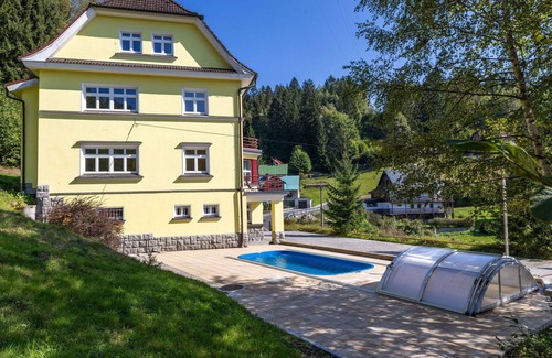 Wonderful private villa for 24 guests with WIFI, private pool, TV and terrace is located in Albrechtice v Jizerskych horach. Wonderful private villa for 24 guests with WIFI, private pool, TV and terrace provides accommodation, featuring Kitchen, Parking, Pool, among other amenities. This Villa features Kitchen, Parking, Pool, to make your stay a comfortable one.