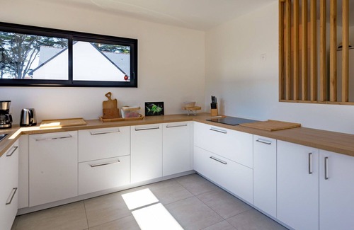 Unwind in the picturesque village of Bretteville-sur-ay, France, at the modern and comfortable "La Dune" vacation rental. This beautiful house offers a private, fenced yard spanning 1,300 square meters, complete with a lawn, wildlife garden, and outdoor shower. Stay connected with Internet WiFi and enjoy the convenience of on-premises parking for two cars.
