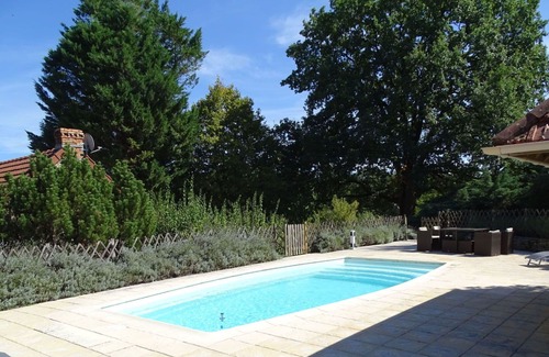 Rustic country house "Montant de Fage, La Pinière", surrounded by trees and meadows. In a hamlet 4 km from the centre of Saint Geniès, 15 km from the centre of Sarlat-la-Canéda, 45 km from the centre of Brive-la-Gaillarde, in the countryside. Private: natural state property 2'000 m2, wildlife garden and trees, swimming pool fenced (8 x 4 m, depth 150 cm, seasonal availability: 13.May. - 30.Sep.) with alarm system. Shower/WC in the pool area. 250 m long motor access to the house (via unmade road). Parking at the house on the premises. Shop 4 km. Golf course (9 hole) 22 km. Nearby attractions: Grottes de Lascaux 16 km, Parc de Thot (Thonac) 20 km, Les Eyzies de Tayac 28 km.