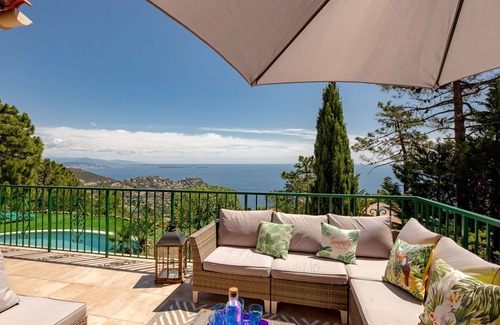 This gorgeous property known as "Ponderosa" offers a truly exceptional vacation rental experience. Nestled in the stunning locale of Théoule-sur-Mer, just 9 km from the town center, and within easy reach of Le Trayas (2.5 km) and Saint Raphael (22 km), the house boasts a tranquil residential setting on a sloped terrain. The property encompasses a vast 1,500 sq.m. fenced natural estate, complete with a stunning kidney-shaped swimming pool (13 x 4 m) that operates year-round (January 1st to December 31st) and is equipped with an alarm system and salt-electrolysis pool cleaning system. Additionally, it features a delightful outdoor shower, ample parking for up to 3 cars on the premises, and convenient access to shops (9 km away), a bakery (2.5 km), and a rocky beach (3 km).
