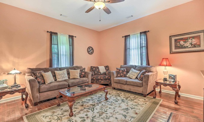 Wooded Georgia Retreat on 6 Acres w/Fire Pit is located in Griffin. Wooded Georgia Retreat on 6 Acres w/Fire Pit provides accommodation, featuring Balcony/Terrace, Security/Safety, Bedding/Linens, among other amenities. This House features Balcony/Terrace, Security/Safety, Bedding/Linens, to make your stay a comfortable one.