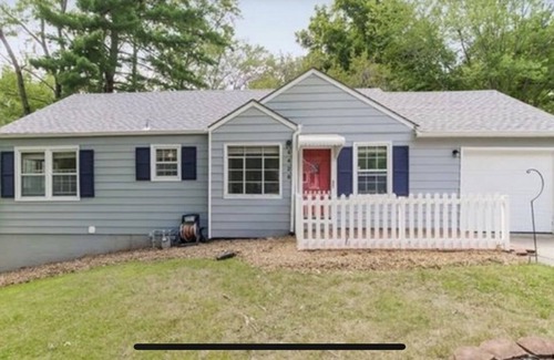 Come relax in our nature escape! Enjoy the luxury of being close to everything but the quiet of nature and enjoy watching the neighborhood family of deer from the front porch or window. Minutes away from shopping and food as well as quick access the interstate, casinos, and downtown KC. Fully furnished, WiFi, Netflix, & a TV in the main living space as well as each bedroom. Newly refinished hardwoods with new paint throughout makes this house fresh and inviting.