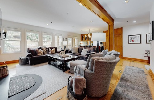 This 3 bedroom, 3 bathroom, at Woodrun Place, is perfect for a Snowmass getaway. It features a spacious living area, fully equipped kitchen, dining area, and private balcony. The condo has modern furnishings and amazing woodwork throughout. Relax and cozy up to the wood-burning fireplace in the living area. An on call shuttle service will transport you to restaurants and shops in Snowmass Village or multiple hot tubs and a heated swimming pool are available to relax in after a long day in the mountains.