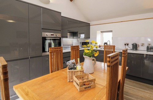 Amenities: Oil central heating with woodburning stove. Electric oven and hob, microwave, fridge/freezer, dishwasher. Washing machine and tumble dryer in shared external laundry room. TV with Freeview, DVD, WiFi, selection of books, games and DVDs. Fuel, power and starter pack for stove inc. in rent. Bed linen and towels inc. in rent. Cot and highchair on request. Off road parking for 2 cars. Lawned garden with patio, furniture, BBQ and hot tub. One well-behaved pet welcome. Sorry, no smoking. Shop and pub 1.5 miles. Note: There are 6 steps down to the patio and BBQ area, 3 steps to the hot tub and 3 steps to the lawned area. There is a level access to the patio via a side entrance.
