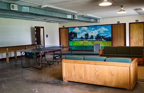 Located at a summer camp that sits on 40 acres, with an extensive backwoods to enjoy, this camper cabin includes a picnic table, fire ring, folding table, coffee maker, and folding table. The cabin has bunks to sleep10 people, with a bathhouse only a 100-yard walk from the door.