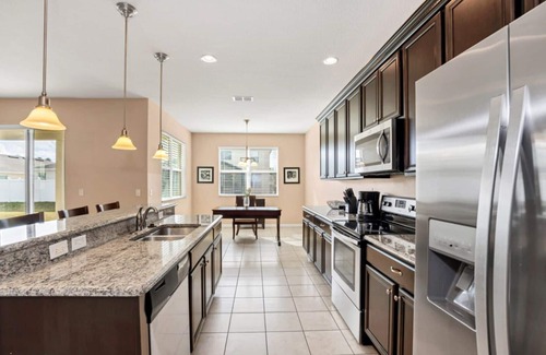 Built in 2013, this vacation rental home has all of the amenities of modern living, granite countertops, stainless steel appliances, walk-in showers, two living rooms and modern decor in all of the bedrooms to make your visit to Central Florida a dream come true!