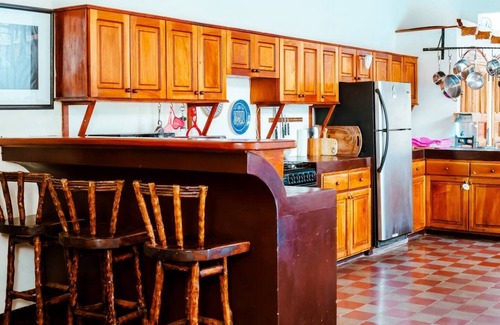 The fully-equipped kitchen is spacious and open and replete with coffee and the cooking basics (spices, cooking oil, etc.). For only $12*, your chef/housekeepers Elisa or Hazell can head to the market and then whip you up breakfast, lunch or dinner. Fancy a smoothie, a plate of rosquillas (a classic local snack), or chilled coconut water from our tree? Elisa and Hazell can make it happen!