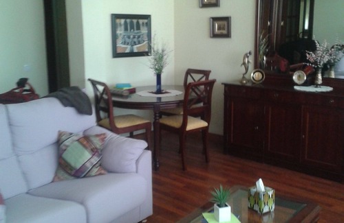 Splendid apartment very bright and cozy, in private urbanization with private parking, with two bedrooms, one with two beds of 90 cm. Together, I offer large sheets, and another single with a 110 cm bed. and extra folding bed, both with large closets, full office with library, bathroom with bathtub, bathroom with shower, large living room with classic-modern furniture, with TV with Movistar fusion system, WIFI, the entire floor with floors wood, fully equipped kitchen with appliances and complete furniture, balcony-terrace overlooking the Giralda and Buhaira area, central heating, air conditioning, close to schools, shopping areas, gym, parks and gardens, medical centers. bars and restaurants, Nervion Plaza Shopping Center, ten minutes from Santa Justa Station and very well connected with buses and taxis to the historic center. Ideal for couples and long stay clients. For rent for more than ten years always to the full satisfaction of customers. Special prices for long stays with welcome details.