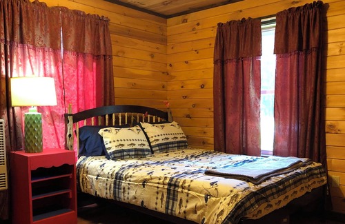 Home offers 3 bedrooms that sleep 5 comfortably, (two queen beds, and a twin air mattress), 1 and 1/2 baths, a full kitchen and on site laundry. Property has a private children's playhouse (swings, slide, low to ground balance beam, etc) as well.