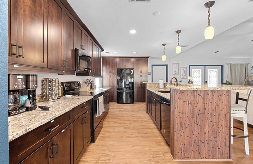 Fully equipped kitchen, washer/dryer, central A/C, smart TV, outdoor BBQ grill, and a peaceful, private backyard to recharge after a day of fun.