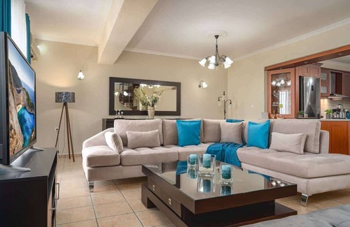 Zante's Azure Escape-Seaside Serenity & Pool Bliss is located in Khartata. Zante's Azure Escape-Seaside Serenity & Pool Bliss provides accommodation, featuring Pool, Security/Safety, Fireplace/Heating, among other amenities. This House features Pool, Security/Safety, Fireplace/Heating, to make your stay a comfortable one.
