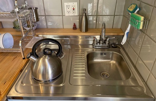 We just remodeled this pristine backyard cottage to include its own private, enclosed and covered deck, bench and outdoor furniture to create a serene lounging/dining area, lit for day or nighttime use. Surrounded by the wooded yards of larger neighboring properties, you will fall sleep to the gentle sound of crickets and wake to the chirping of birds as the dappled morning sun enters the cottage. 300 ft above the city, the sunsets too are spectacular, as the front yard faces west and the sun can be seen descending below the ocean horizon. This quiet cul-de-sac street is centrally located on the Mesa near many Santa Barbara amenities: 2 blocks away to Honda park hiking and running trails, 6 blocks to the Mesa Lane beach access. 5 blocks to organic produce and groceries, CVS, coffee shops and several restaurants and services. 7 minutes drive to world-class SB downtown Spanish-Moorish architecture, theaters, mall, museums and wharf. We will supply organic coffee or tea of your choice for your arrival. Driveway parking. Arrangements can be made for laundry use in the main house. Kitchen includes drip coffee maker or french press, Cuisinart toaster oven, microwave, electric cooktop and under-counter frig and freezer. We are locals and can supply maps and info for local cultural attractions and lesser-known SB trails and wilderness preserves.
